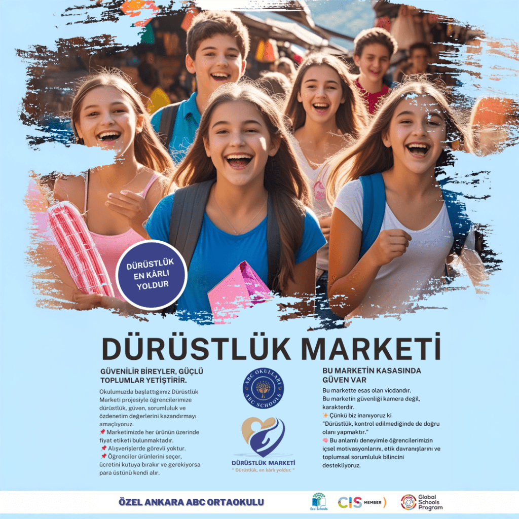 Ortaokul Din Kültürü ve Ahlak Bilgisi Zümresi olarak, bu yıl 16-17 Ekim tarihlerinde üçüncüsünü gerçekleştirdiğimiz Geleneksel Dürüstlük Marketi, öğrencilerimiz ve velilerimizin güçlü desteğiyle yine anlamlı bir buluşmaya dönüştü. Etkinliğimizde dürüstlük, yardımlaşma, paylaşma ve empati değerlerini ön plana çıkararak okul iklimimize hem eğlenceli hem de derinliği olan bir katkı sunduk. Etkinliğimizin ilk yılında elde ettiğimiz gelirlerle hayvan barınağına mama desteği, ikinci yılında ise AKUT’a sarf malzemesi desteğinde bulunmuştuk. Bu yıl ise, bir köy okuluna kütüphane kazandırarak bu sosyal sorumluluk geleneğini taçlandırarak daha da büyütmeyi ve derinleştirmeyi hedefliyoruz. Destekleriyle her yıl bu iyilik zincirine güç katan öğrencilerimize ve velilerimize gönülden